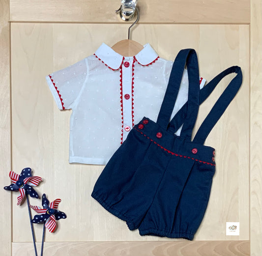Red, White, and Blue Children’s Outfit-Set of Shirt and Suspender Shorts