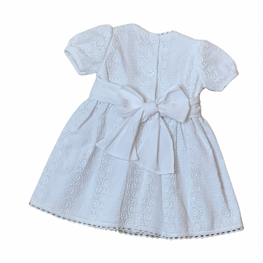 Baby Girl Dress - Embroidered White Cotton Puffed Sleeve Dress, Bonnet, and Bloomers