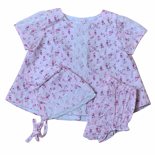 Pink Floral Puffed Sleeves Dress and Bloomers Set - Alfa Baby Boutique