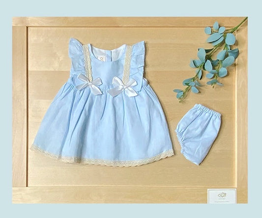 Sky Blue Linen Empire Waist Dress & Bloomers Set