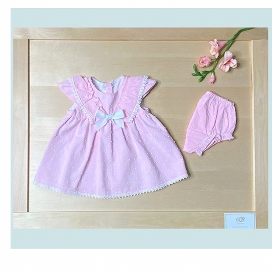 Pink Cotton Candy Fluttered Sleeves Dress and Bloomer Set