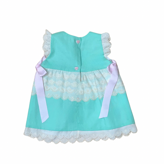 Infant, Girl Dress and Bloomers Set, Flutter Sleeves Mint Colored Dress