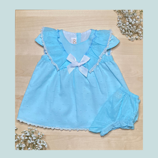 Newborn Baby-Toddler Dress- Fluttered Sleeves- Blue Girl's Dress- Bloomer Set-Children's Clothing Store