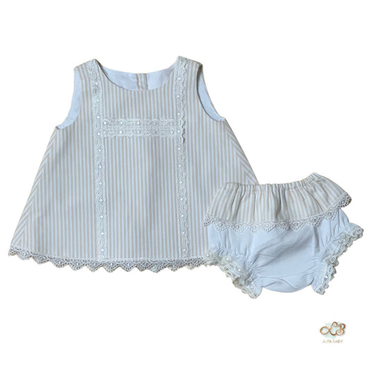 Baby Girl Summer Dress - Ivory-Vanilla A-Line Style Dress and Bloomers Set