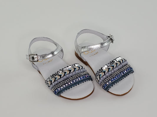 Metallic Silver and Blue-Girls Sandals-Sandals for Girls-Children Sandals- Beaded Sequins Sandals