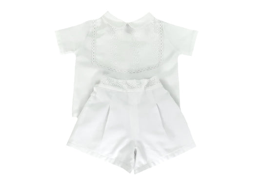 Boy’s Set White Embroidered Cotton Top and Shorts