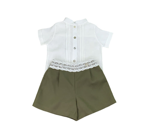 Boys-White Linen Shirt- Olive Shorts Set-Boy's Clothing Store-Toddler Boy Set