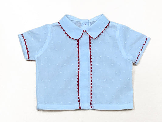 Boys-Sky Blue Shirt- Beige Bubble Shorts Set