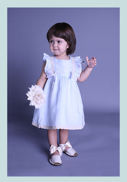 Sky Blue Linen Empire Waist Dress & Bloomers Set