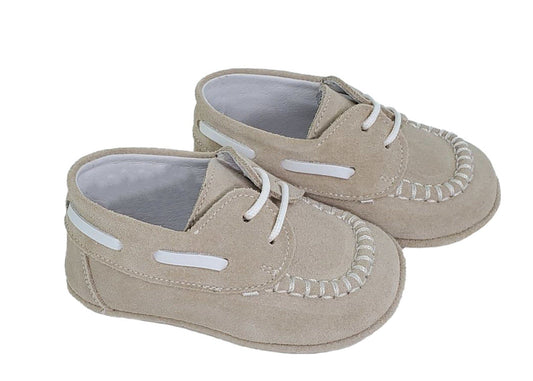 Infant, Boys Moccasins, Latte Suede and Napa White Leather Moc Toe Pre-walker Shoes