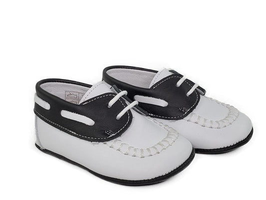 Zapatos para bebés, niños, cuero blanco napa y zapatos de pre-andador moc negros