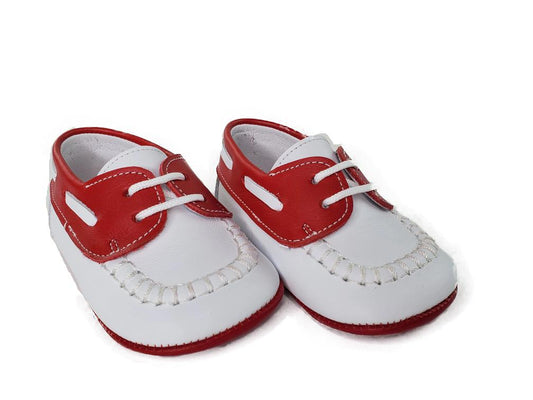 Napa White and Red Moc Pre-walker Shoes-Toddler Boy Shoes