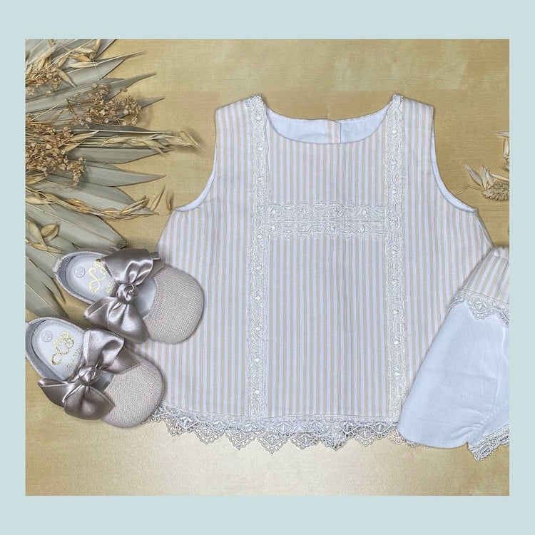 Baby Girl Summer Dress - Ivory-Vanilla A-Line Style Dress and Bloomers Set