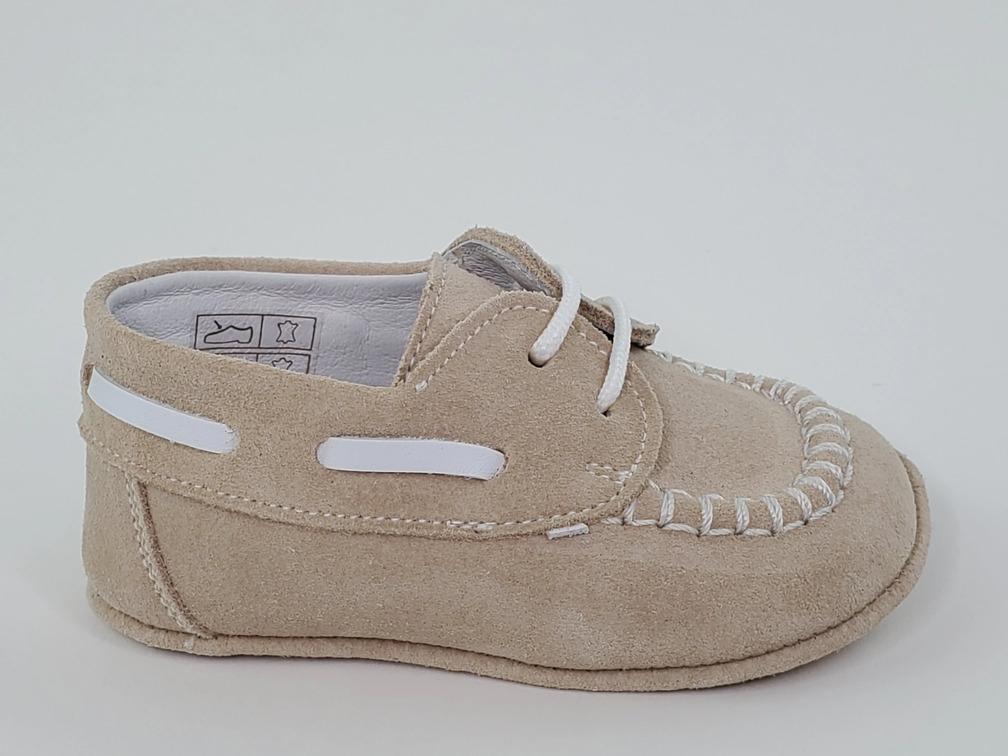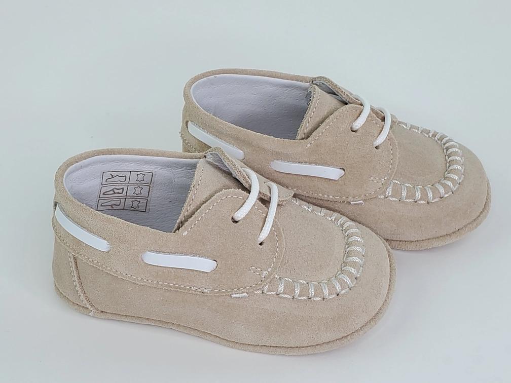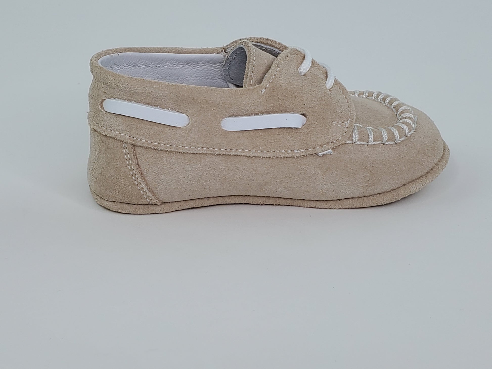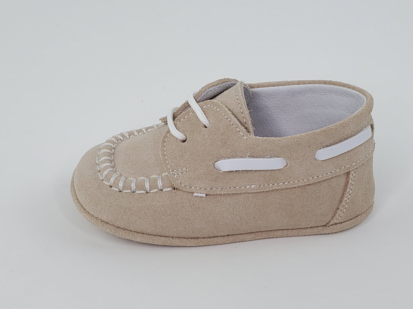 This round moc toe pre-walker Baby Boy Shoes is the perfect addition to achieve a casual but classic look. This Infant Shoes Upper is constructed in a latte macchiato color suede. Style with stitching and white leather decorative lacing. Breathable soft leather lining and a soft leather sole provide the perfect amount of flexibility and comfort for your baby’s growing feet.