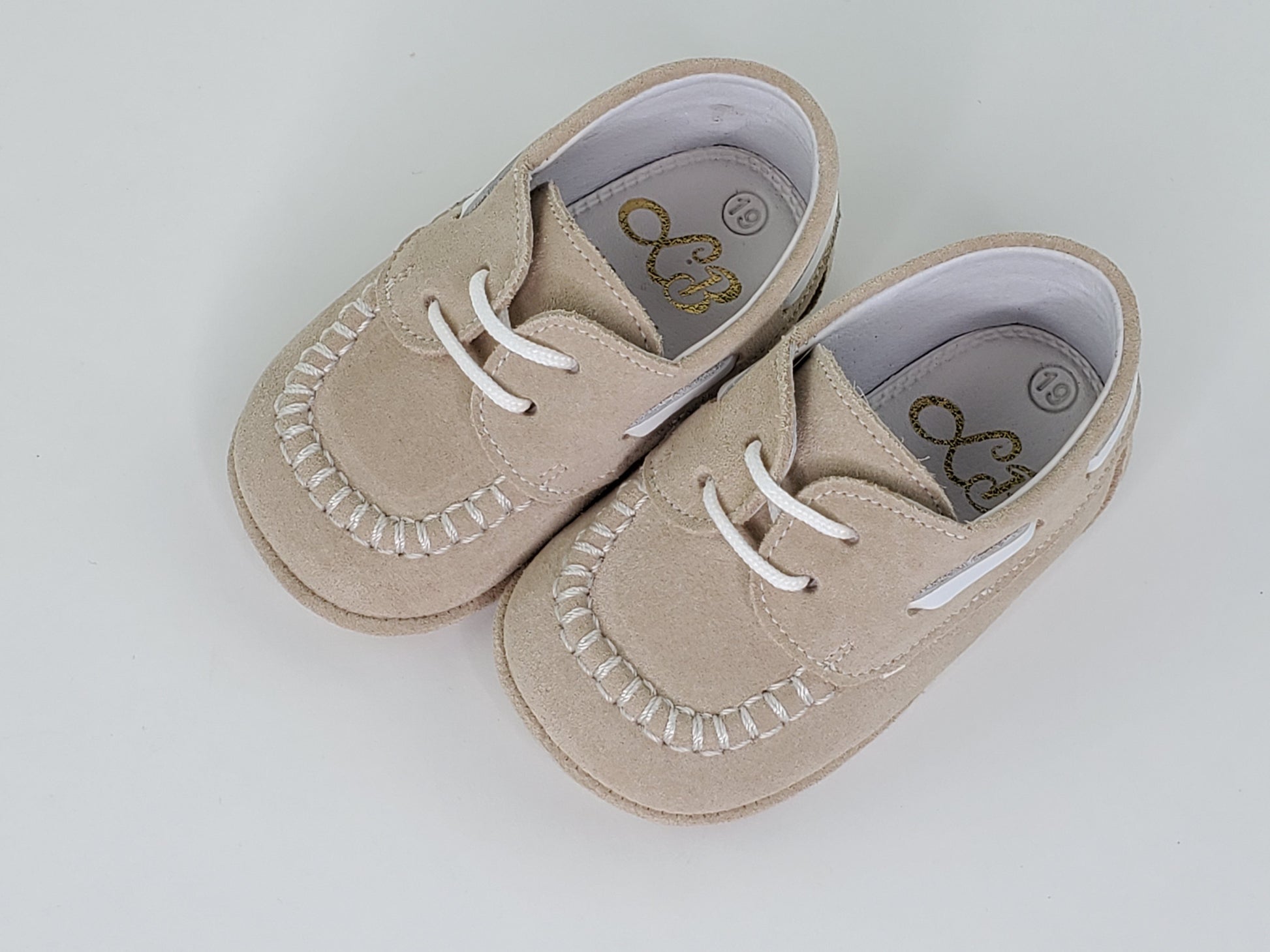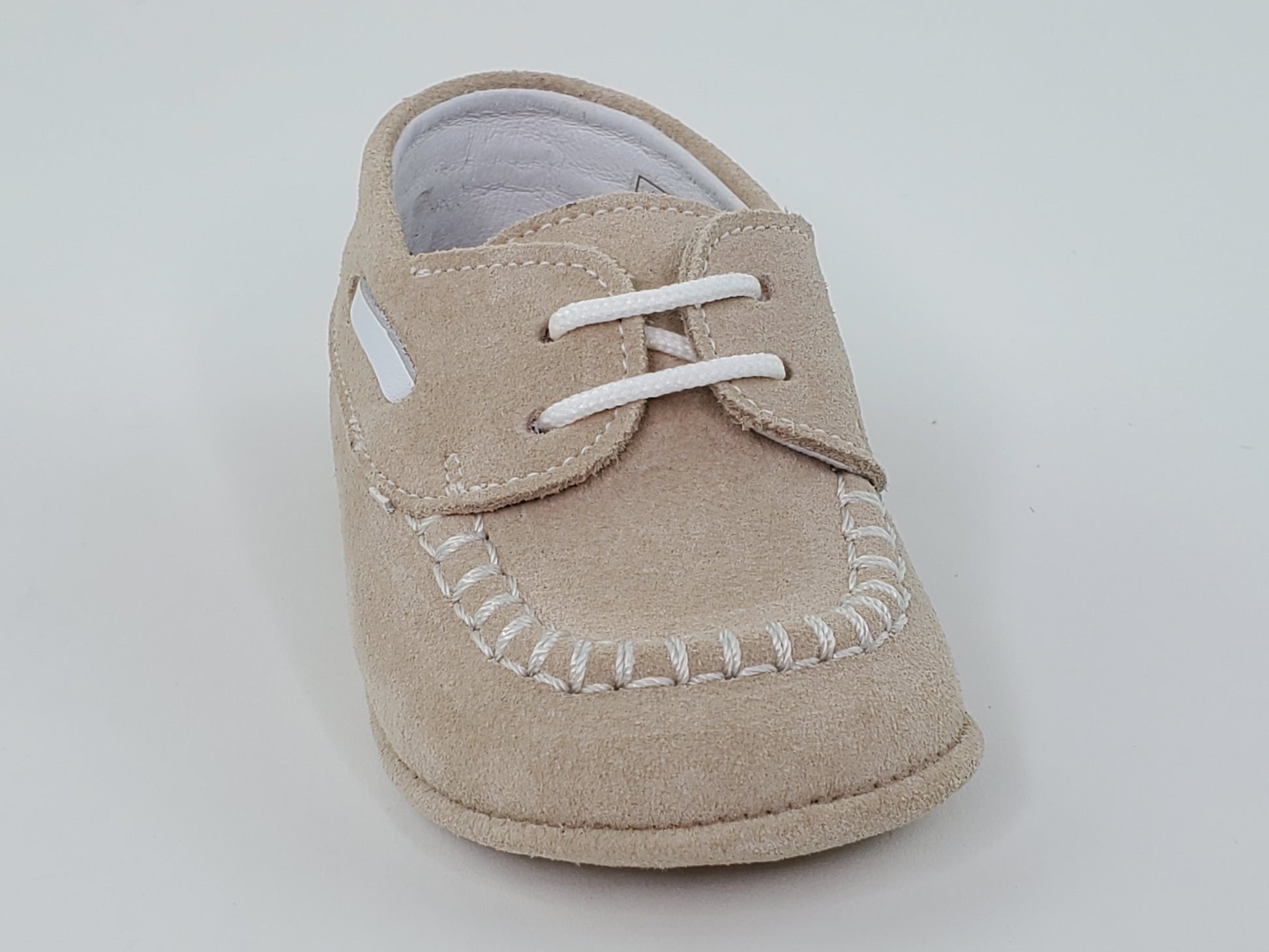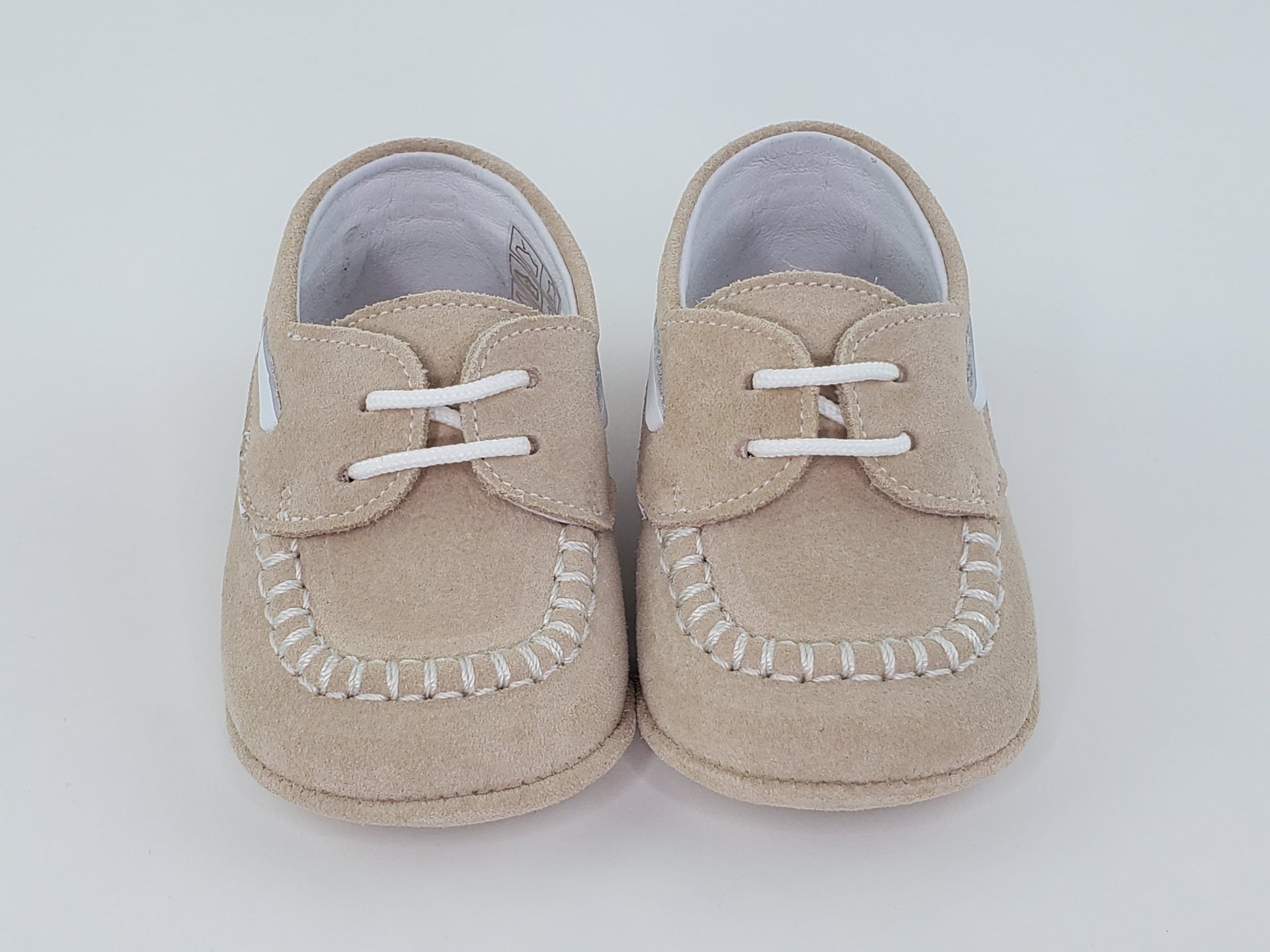 Infant, Boys Moccasins, Latte Suede and Napa White Leather Moc Toe Pre-walker Shoes