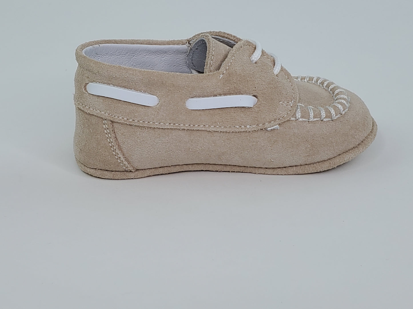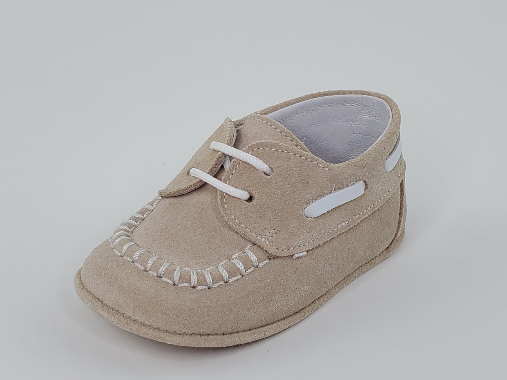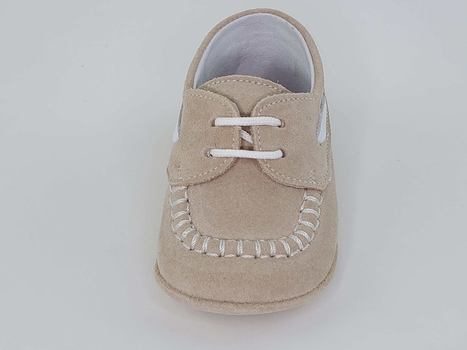 Infant, Boys Moccasins, Latte Suede and Napa White Leather Moc Toe Pre-walker Shoes