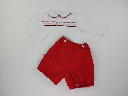 Boys Set, Hand Smocked Red and White Long Sleeve Set