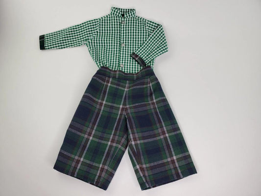 Boys Set, Long Sleeve White Cotton Shirt & Red Tweed Wool Trousers Set