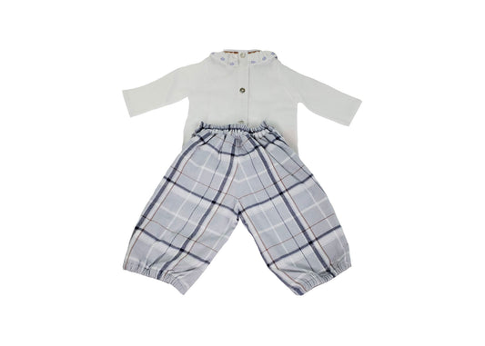 Boys Set, Ivory and Royal Blue Cotton and Silk Set
