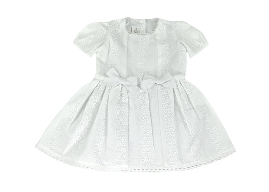 Girls- Embroidered White Cotton Puffed Sleeve Dress- Bonnet- Bloomers