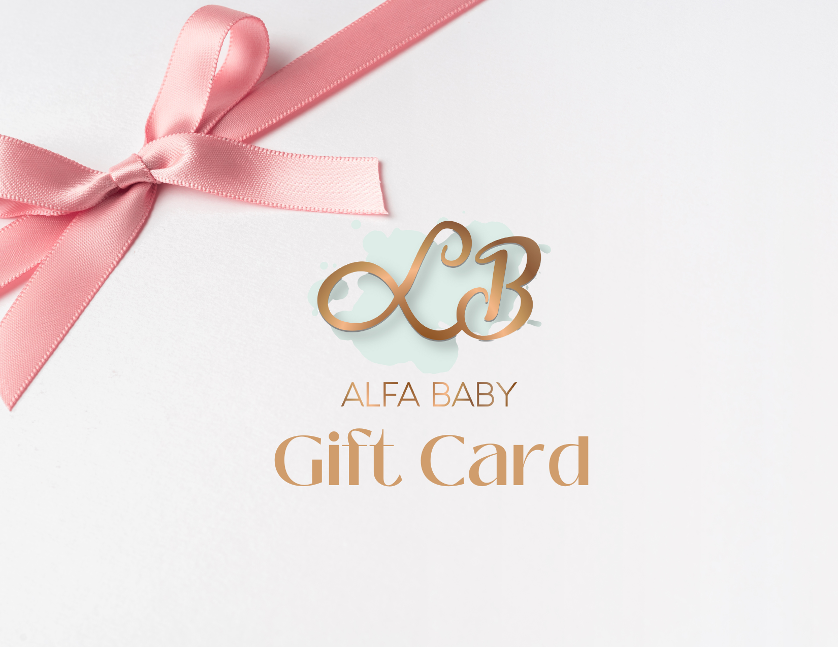 Show them how much you care. Give the perfect gift with an Alfa Baby Boutique gift card. Need a last minute gift? You can purchase gift cards online and email at your convenience. Choose from a variety of denominations. Never expires. Redeemable for merchandise on our Alfa Baby Boutique online store.